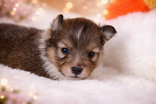 Sheltie in den klassischen Farben Zobel-Weiß.